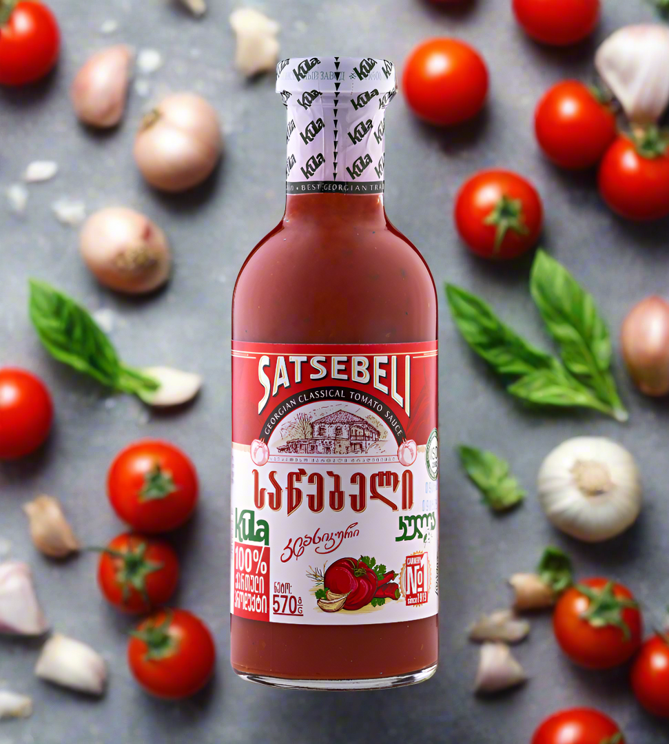 Satsebeli is a traditional Georgian sauce widely used in Georgian cuisine to enhance the flavours of various dishes. It is typically made with fresh tomatoes, garlic, herbs, and spices, creating a rich, tangy, and slightly spicy flavour profile. Satsebeli is versatile and often served as a condiment with grilled meats, eggs, khinkali (dumplings), fish, or even fried potatoes. Its vibrant taste and aroma make it a staple in Georgian households and has a place in Georgian cuisine similar to the one tomato sauce has in Australia.