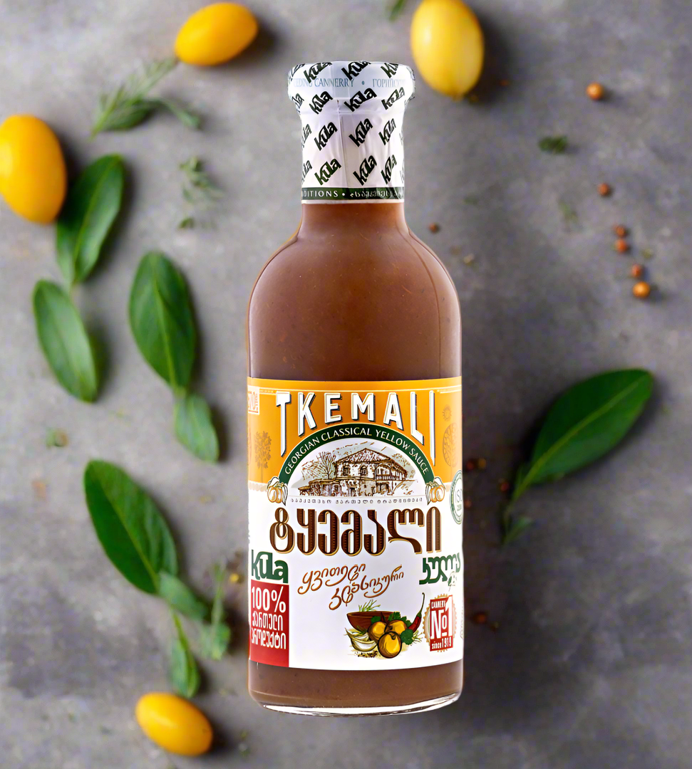Yellow Tkemali sauce is a traditional Georgian condiment made primarily from yellow plums or wild cherry plums (called Tkemali in Georgian). It’s a variation of the more common red or green Tkemali sauces, which are also made from similar fruits but differ slightly in flavour and colour based on the type of plum used.